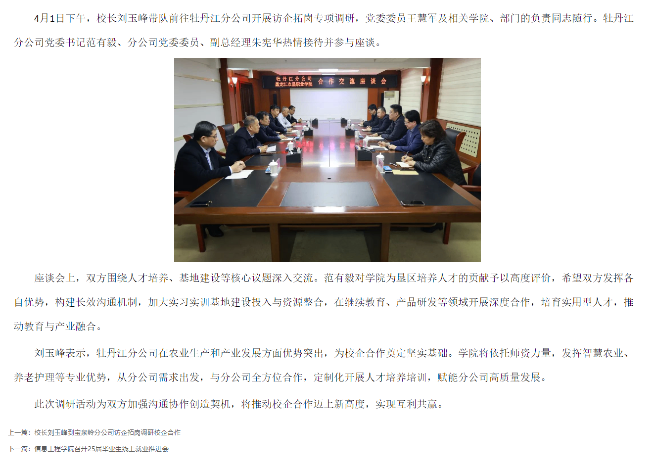 校长刘玉峰赴牡丹江分公司开展访企拓岗专项调研活动
