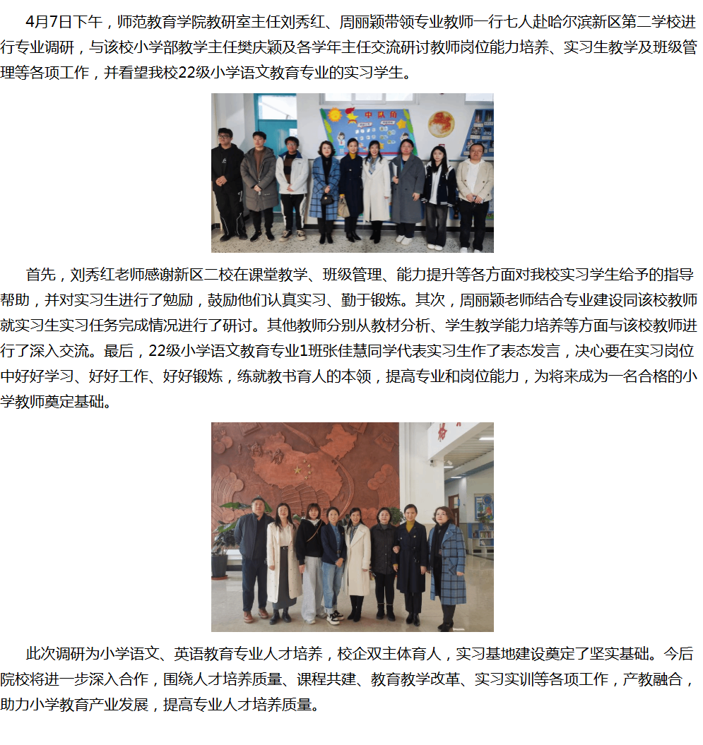 师范教育学院赴哈尔滨新区二校调研